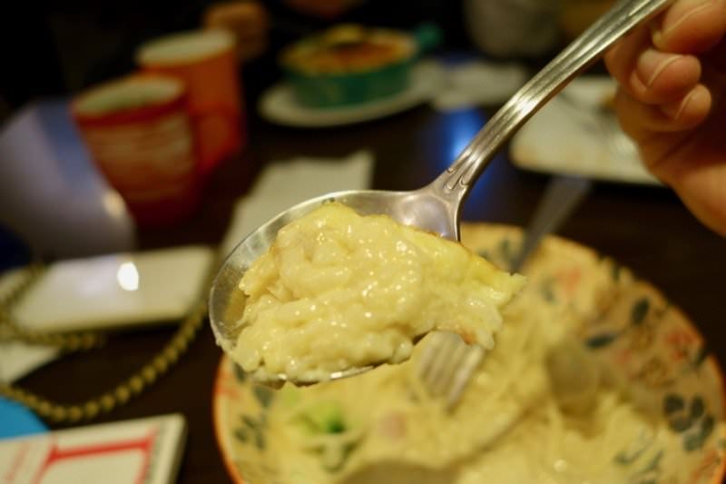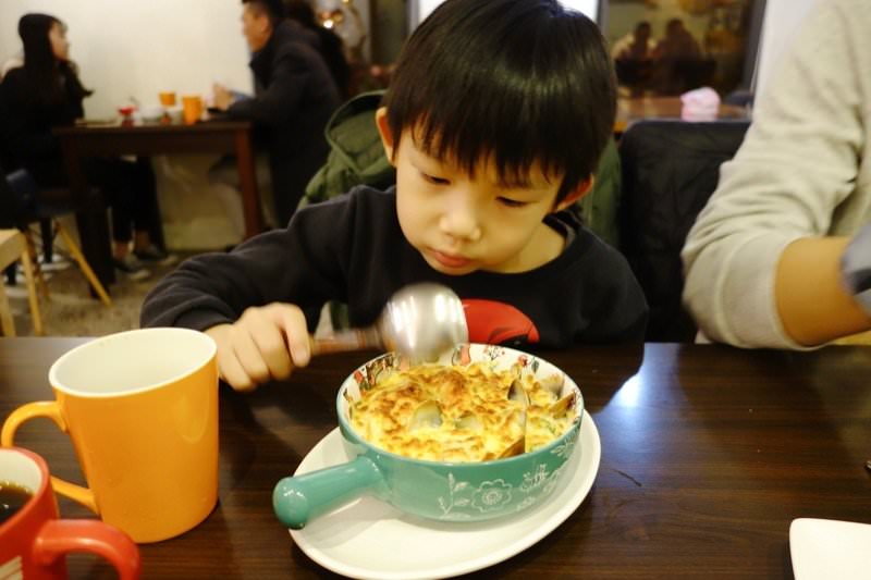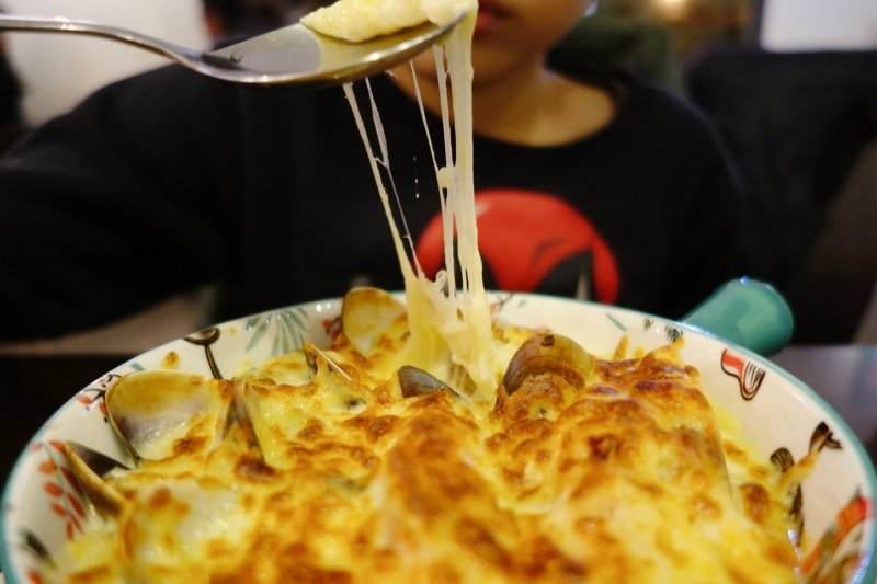 焗烤上頭滿滿的起司,烤得剛剛好的焦酥看起來非常可口,加上一樣層次豐富又入味的白醬、新鮮海鮮,很快就被希希吃完了!
