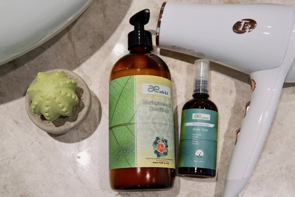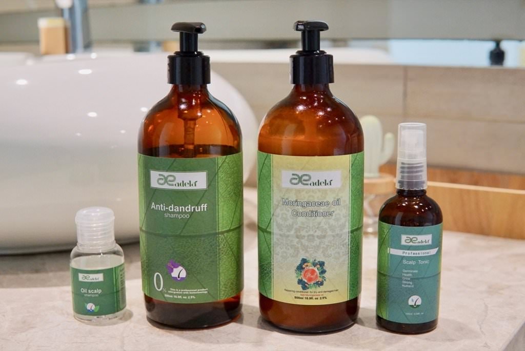 這次用台灣研發的品牌「愛德拉」洗髮精、護髮素,加上頭皮調理液,