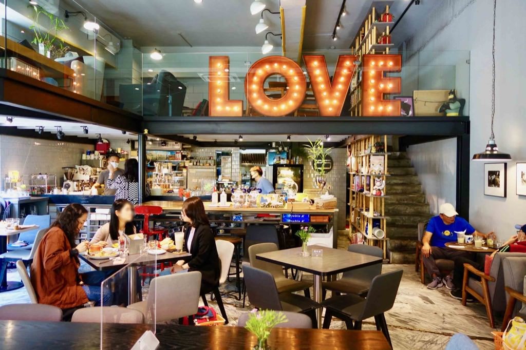 ▼進去之後大大的LOVE霓虹燈就在眼前,樓中樓設計一進門就感覺到屋頂挑高與擺設很有溫度、很舒服