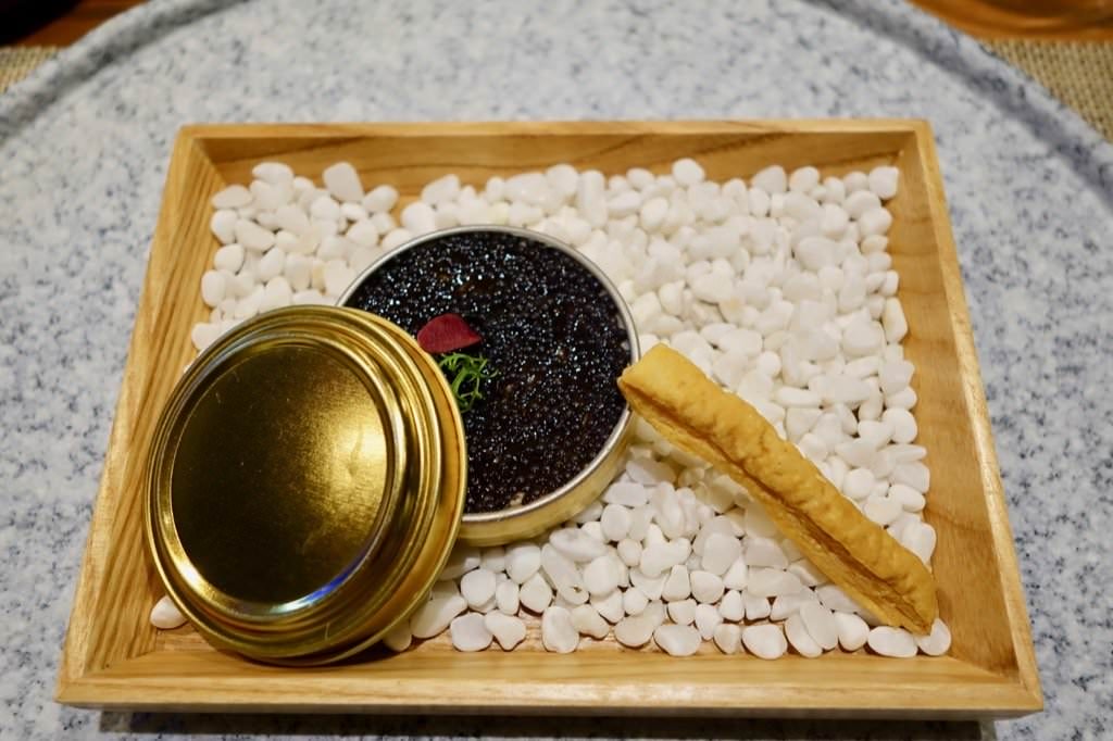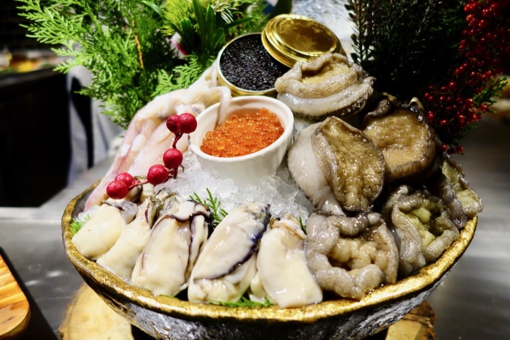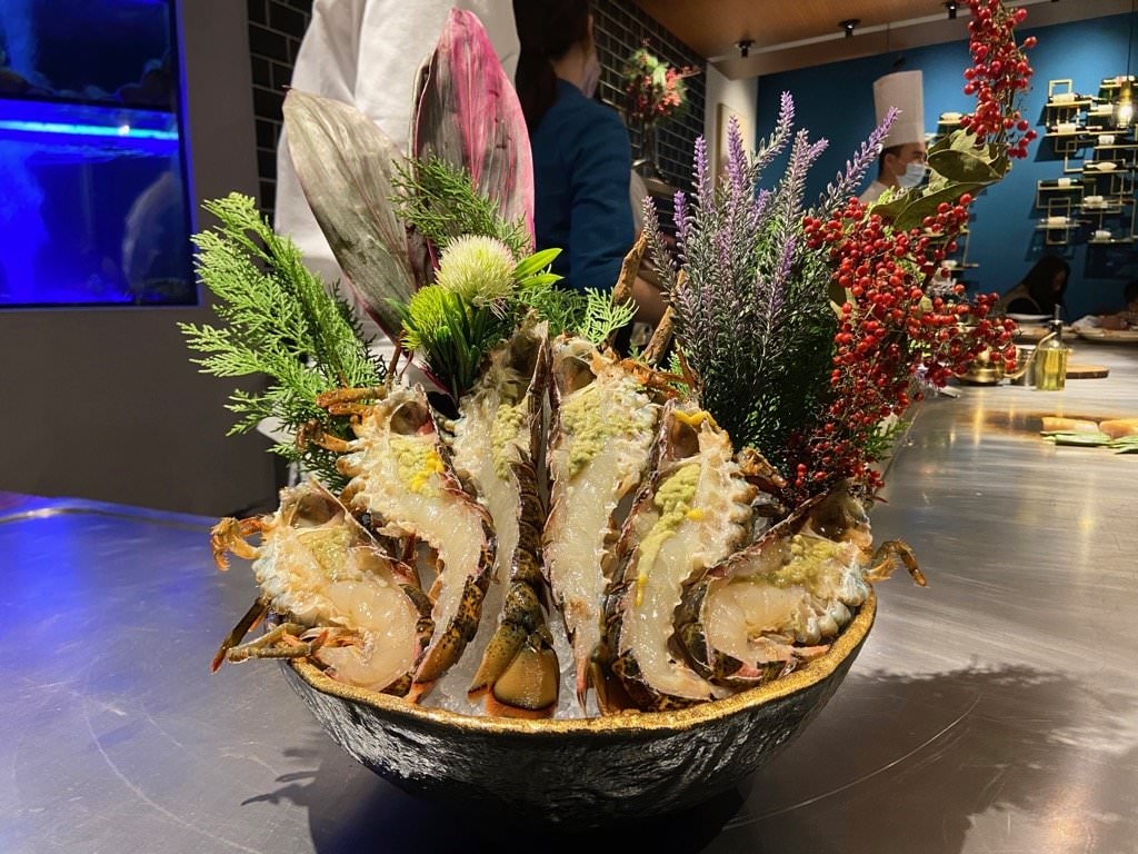 ▼廚房口旁邊有活跳跳的新鮮鮑魚與龍蝦,還有在備料區的魚子醬,看起來好美味啊!