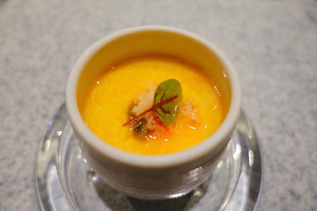 ▼ 這道是松葉蟹膏蒸蛋+飛魚卵醬,這蒸蛋味道超鮮甜!好吃到吃貨小孩嚷著要吃我的,我只吃到兩口XD