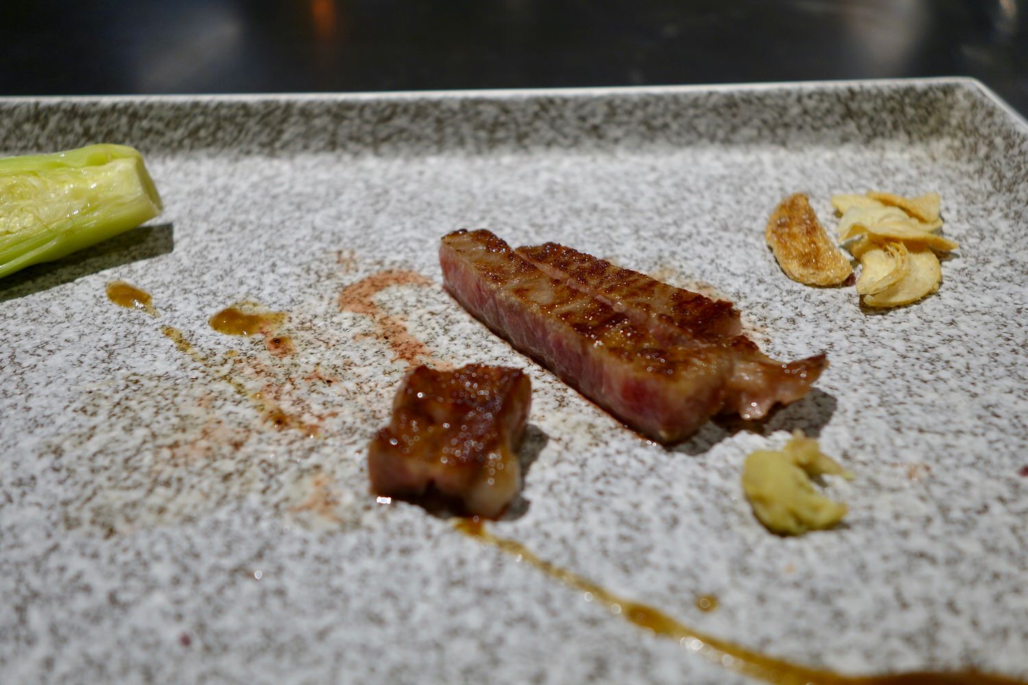 ▼ 日本頂級A5和牛,搭配法國紅酒鹽與山葵醬,入口即化,綿密中透著讓人難以忘懷的和牛香氣,目測感覺3oz左右,我家吃貨小孩真的懂吃,吃過之後就說要吃和牛不要吃菲力(菲力也好吃啦XD)。