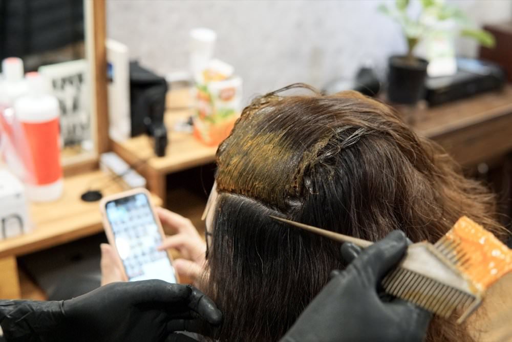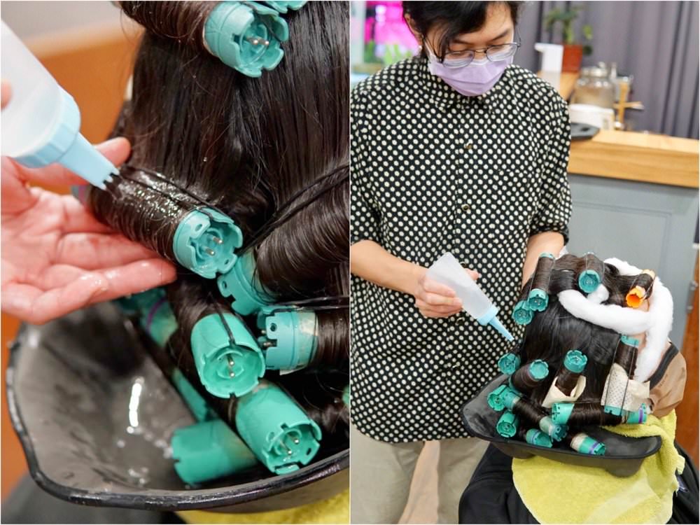 燙髮前的軟化藥水也會分段上,確保髮質軟化的過程。