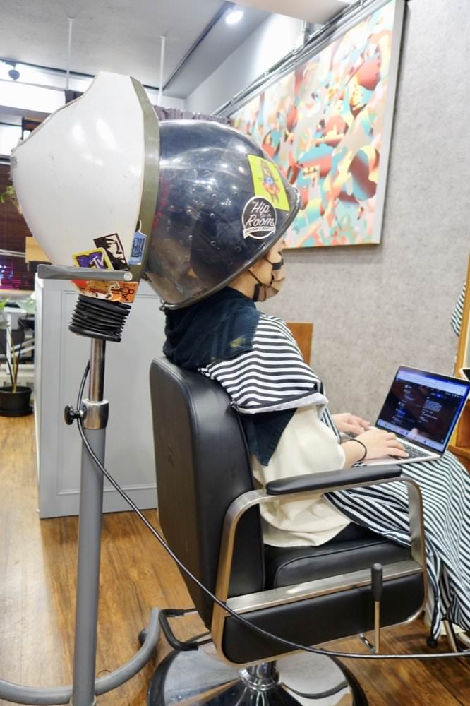 我燙到一半 Tai 來找我順便剪頭髮,