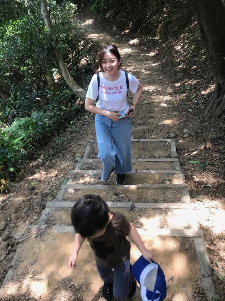 ▼羊稠坑步道的道路寬敞,剛開始有一段好漢坡,約215階的石梯,還有土石路,雖然有點陡,但是和小孩一起慢慢走其實很OK的