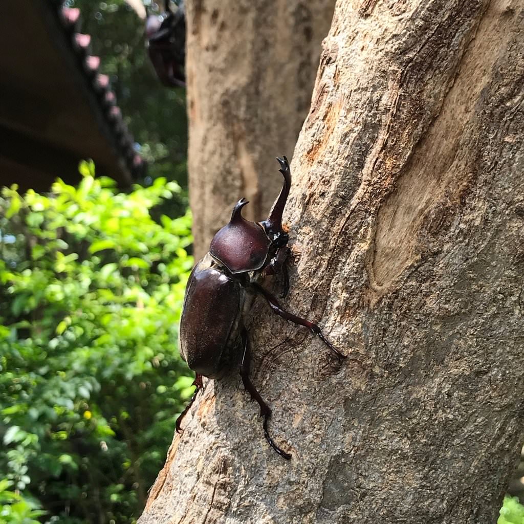 獨角仙活動的時候不是進食就是交配,但是交配很耗費他們的體力,所以野外獨角仙的壽命,通常會比飼養的獨角仙壽命還要短,當天就有看到他們瘋狂交配的情境,真的是不停歇!而且交配到一半還會有別隻公的獨角仙來搶老婆、仙拚仙(?),說是搶親擂台真的不為過XD。