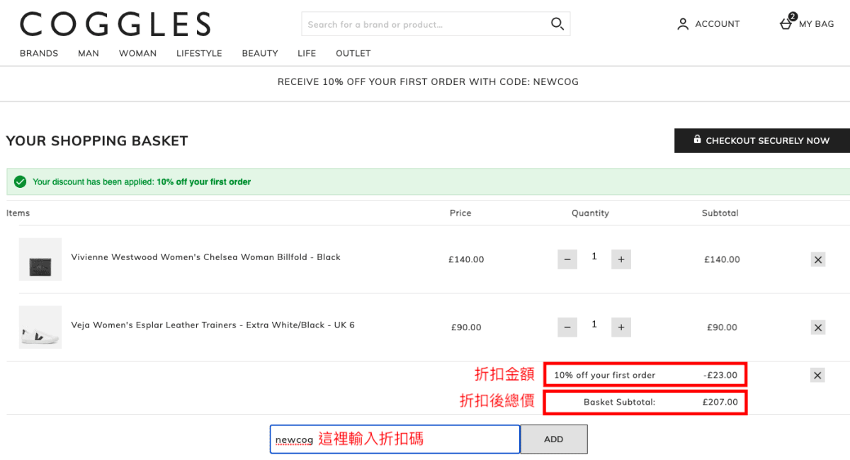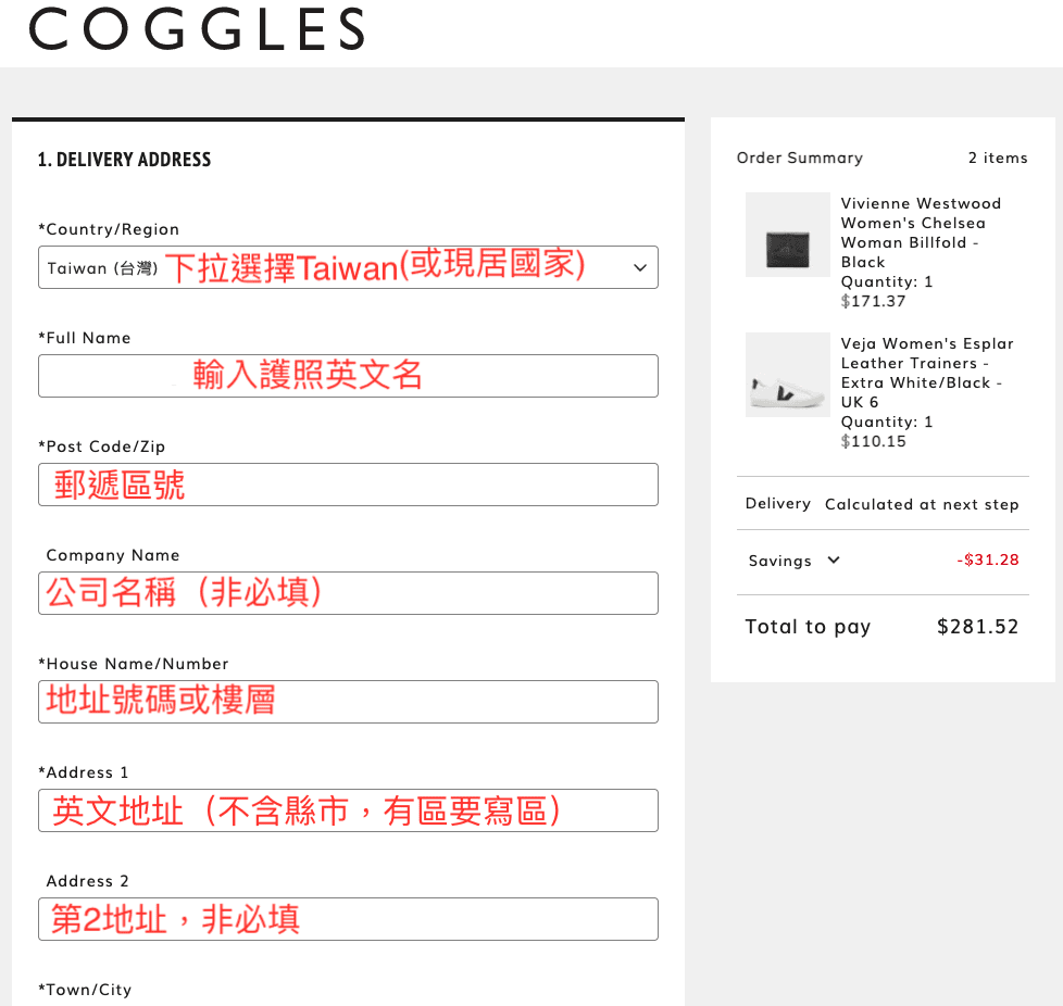 英國COGGLES購物教學|優惠折扣碼、國際運費、關稅資訊分享|Vivienne Westwood真皮短夾、VEJA小白鞋戰利品開箱(2024更新)