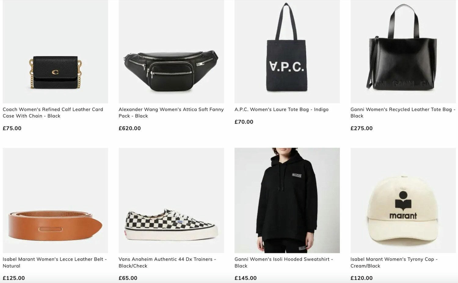 有:POLO、A.P.C.、Ganni、Marc Jocobs、Coach、Isabel Marant、See By Chloe等品牌,