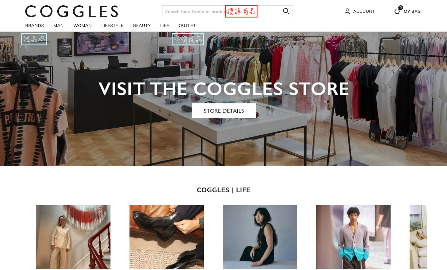 COGGLES官網是英文介面,官網網羅的國際知名品牌超級多,