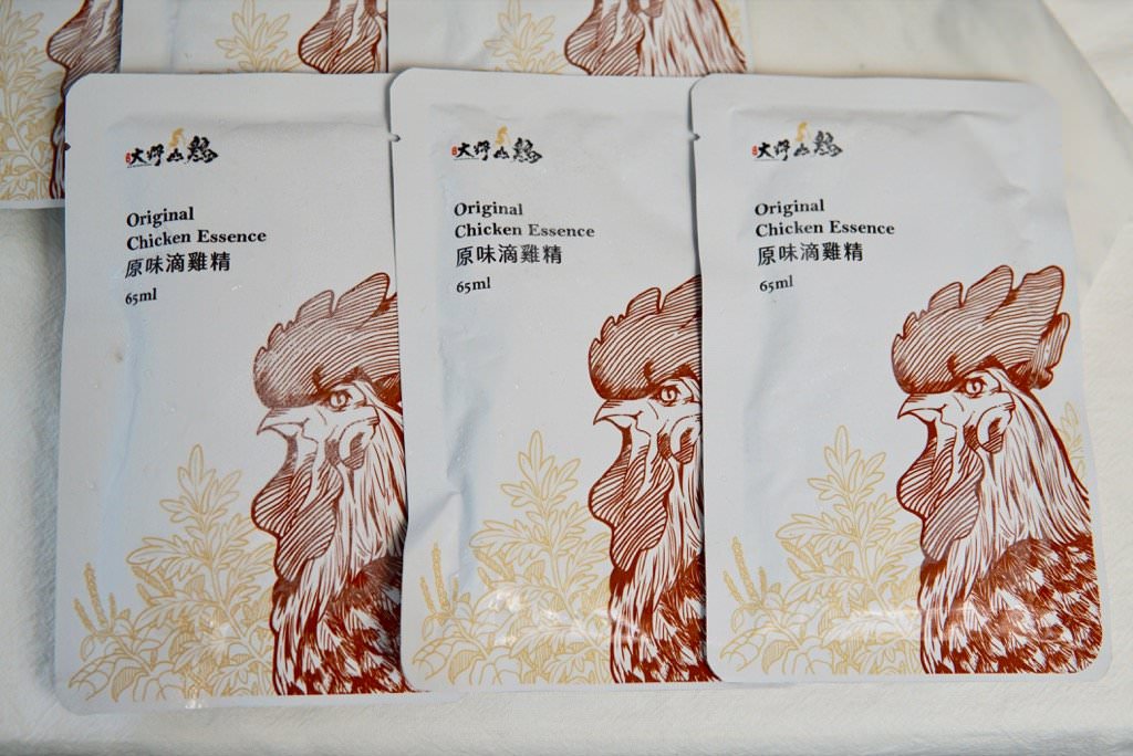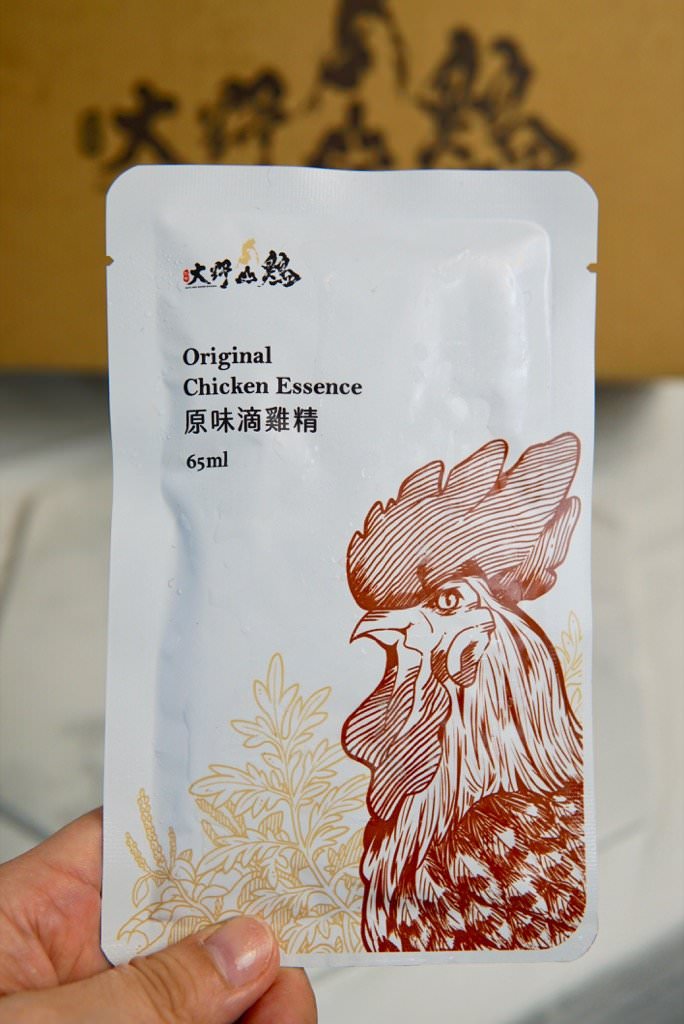 ▼大野山雞滋補滴雞精輕便鋁箔包裝,這個包裝一組6入,很適合沒喝過想嚐嚐看他們家滴雞精口感的人!