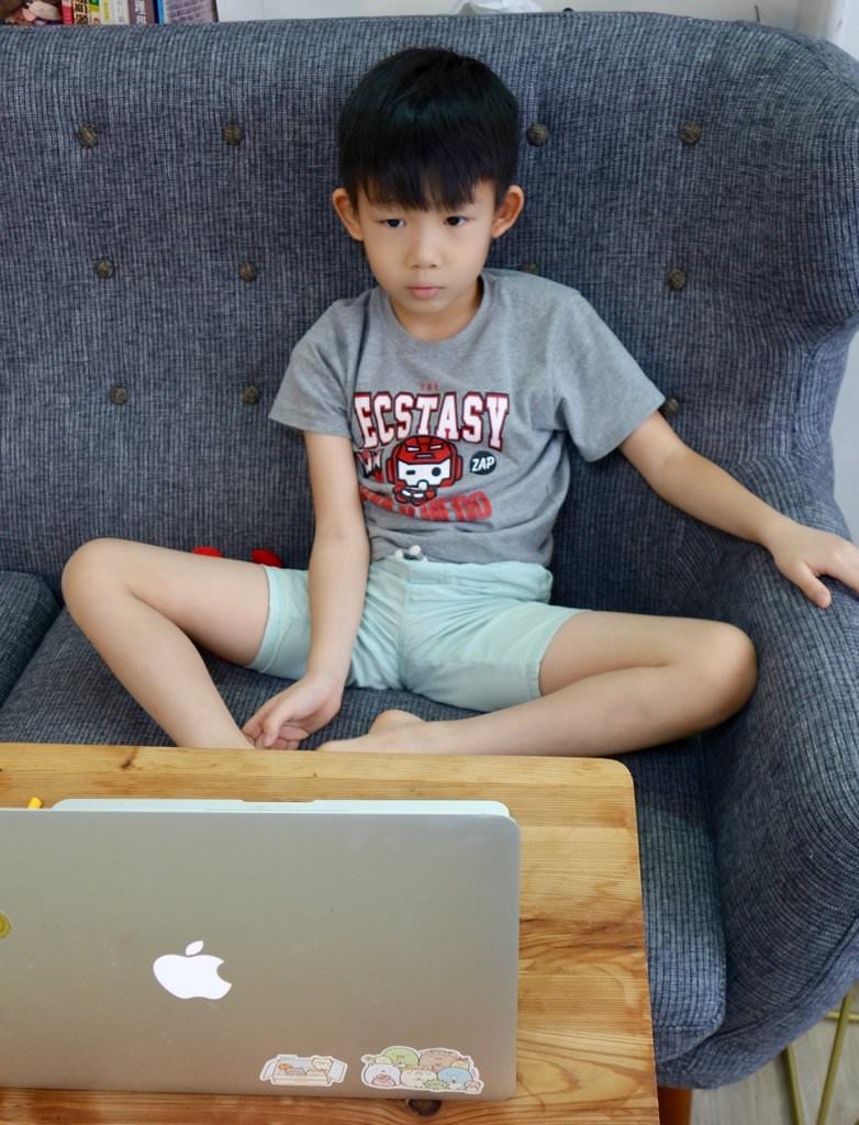 一直到停課不停學,希在家上國小的英文網課,我在螢幕外全程跟著上課,