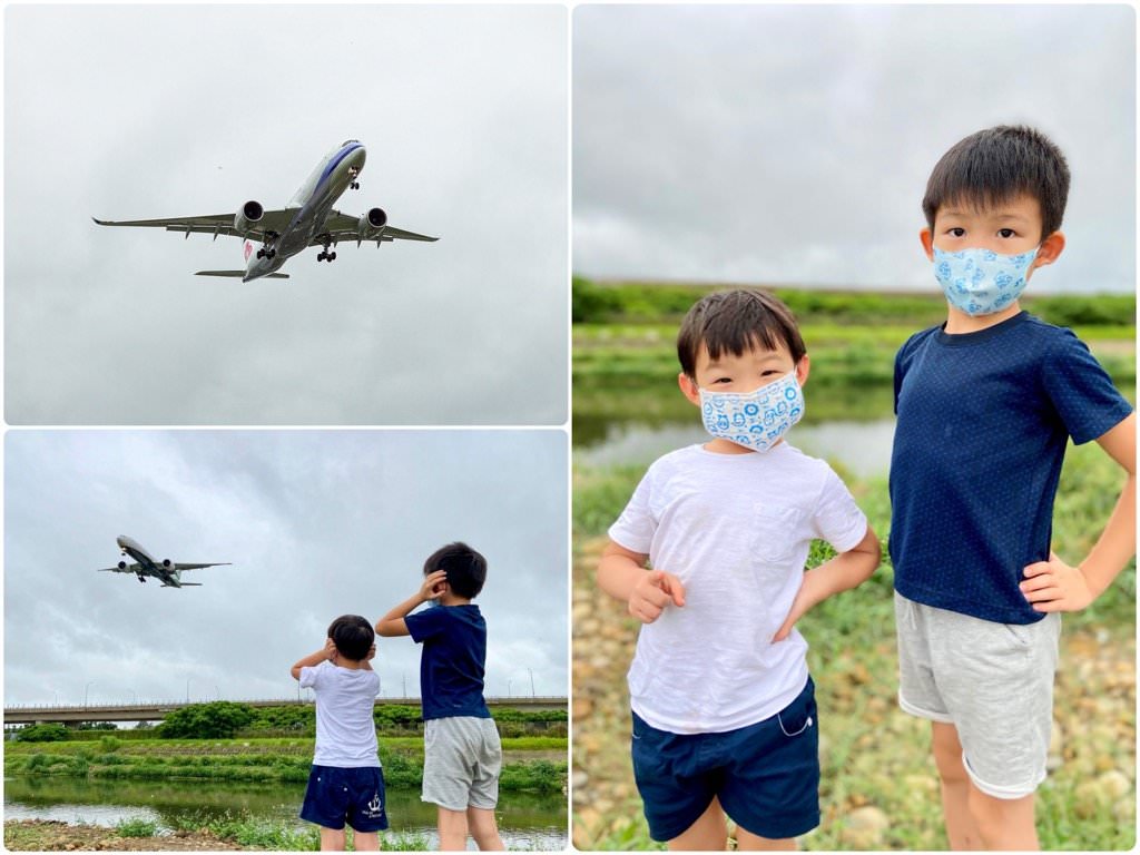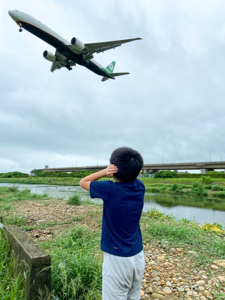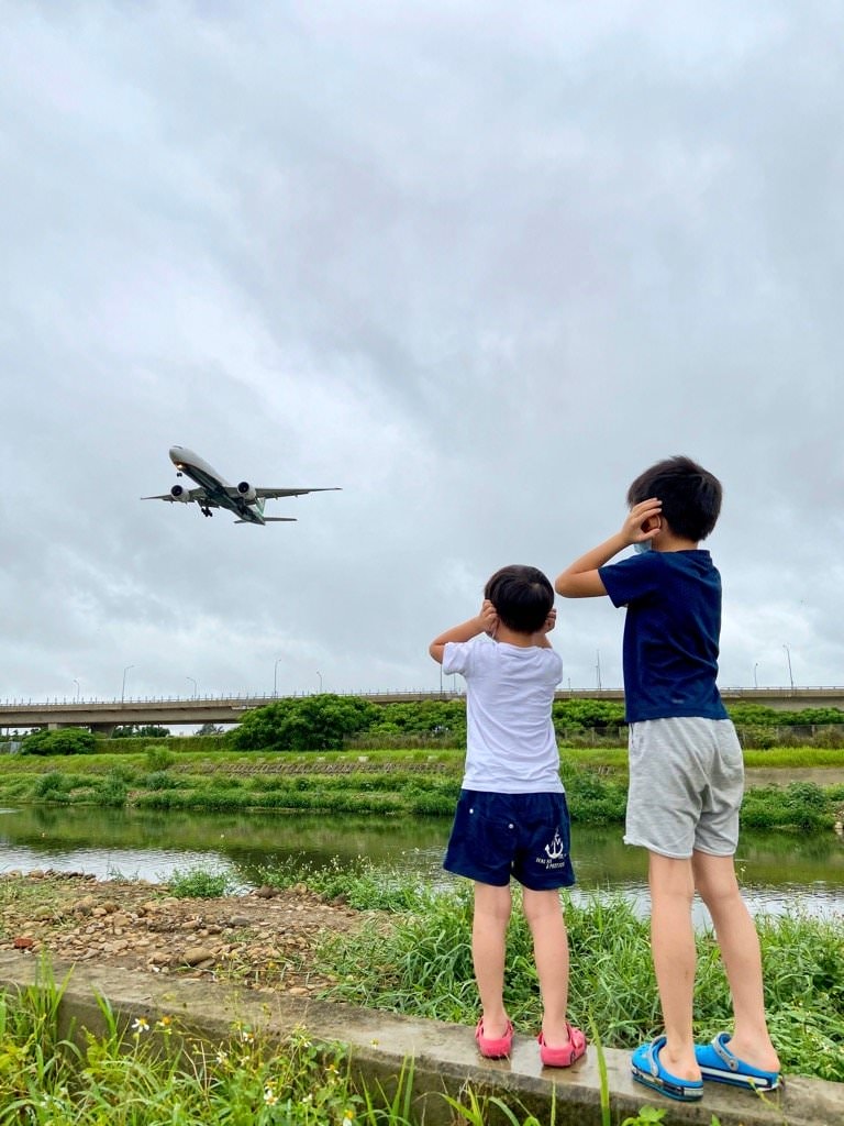▼飛機經過時,可以聽到引擎運轉的聲音超大的!經過正上方時小孩要捂著耳朵才受得了😂