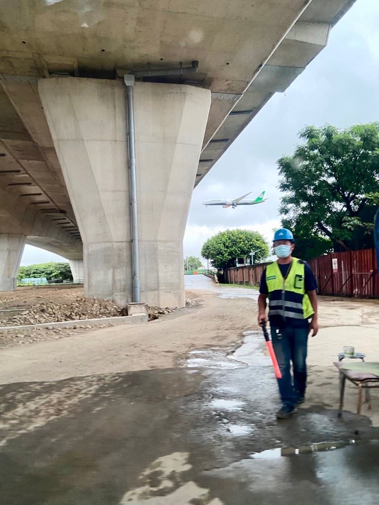 ▼接著經過一個底下在施工的高架道路,已經可以看到飛機從上方經過了!