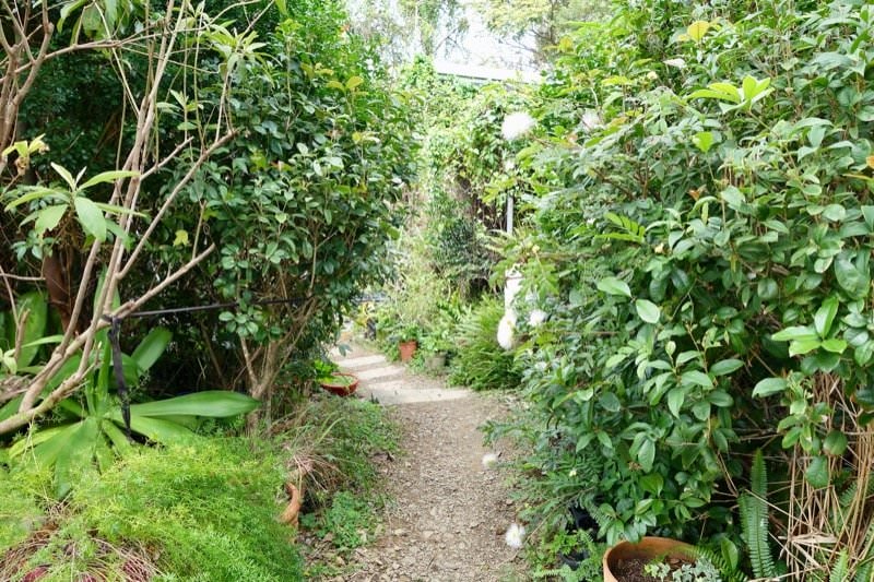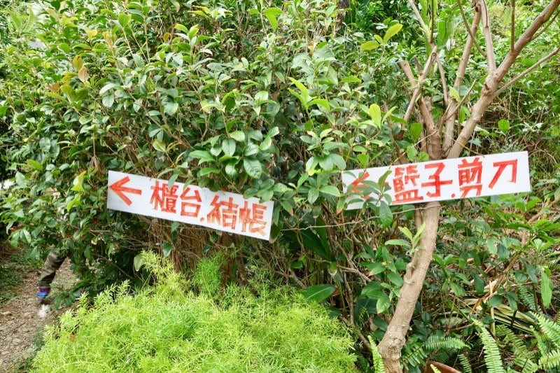 停好車之後跟著牌子指示往下圖神秘小巷走,到櫃台旁自助拿籃子跟剪刀。