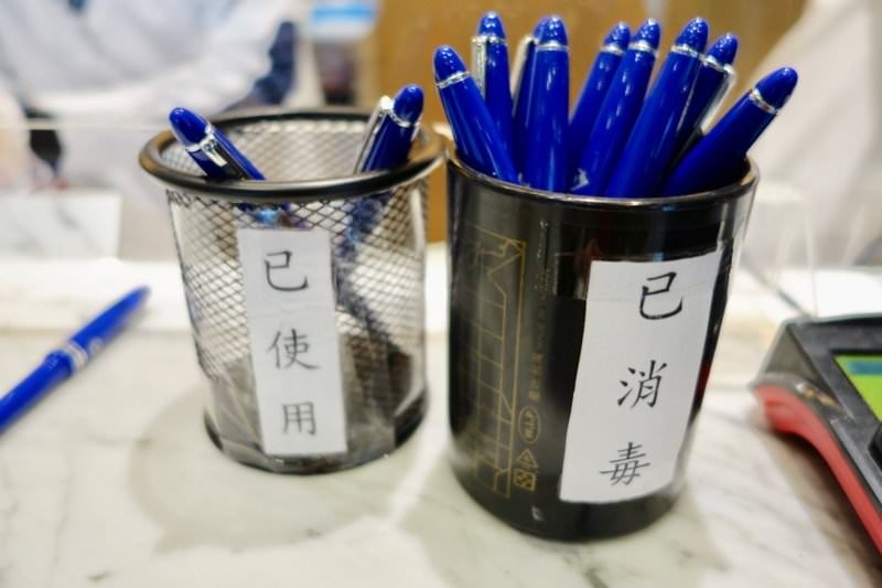 ▼防疫方面蠻用心的,連筆都有分已消毒跟已使用的