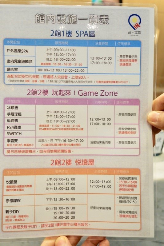 ▼館內設施在中午、晚餐都會有休息時間,check in可參考館內設施服務時間,可以好好安排去泡溫泉跟遊戲區的時間,另外這裡也有親子手作DIY課程,也可以同時詢問櫃台。