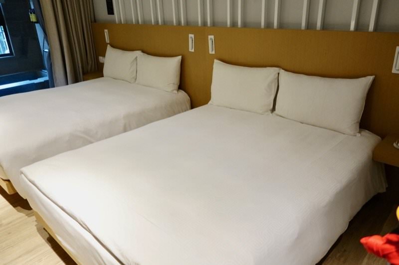 ▼品文旅的房間設計走極簡風,文漾家庭房就是Agoda上的“頂級家庭房”,房間不大但蠻舒適的,我們兩大兩小一起睡,怕睡旁邊的小孩掉下來,就把兩張床併在一起,小孩睡中間。如果是更小的嬰兒,房間有提供嬰兒床、床圍、澡盆、消毒鍋、嬰兒沐浴組,還有鏡像投影器也可免費預約喔!(數量有限,訂房後電話預約)