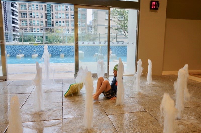▼兒童遊戲池雖然不大但很好玩,有溜滑梯、噴泉舞池~室內外的水溫都很足夠(維持在38~41度)