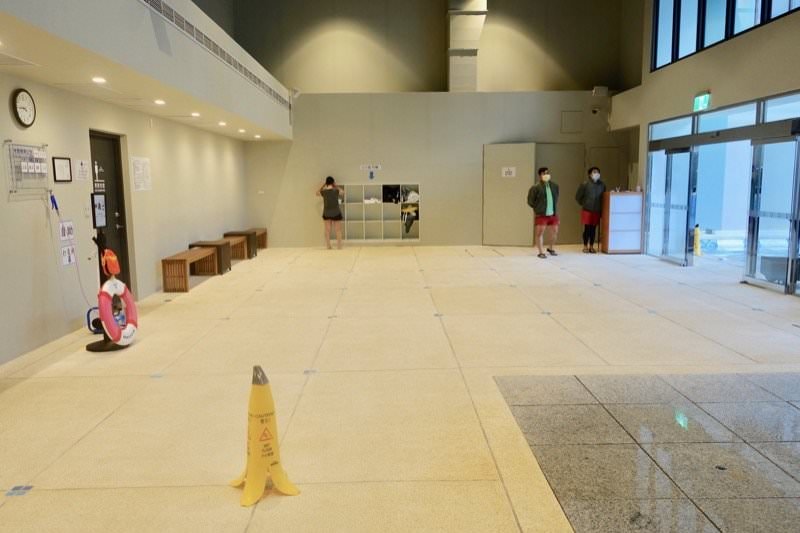 ▼品文旅的泡湯SPA在2館1樓,報房號後櫃檯人員就會給浴巾跟保險櫃鑰匙,只要帶著泳衣、泳帽去即可!