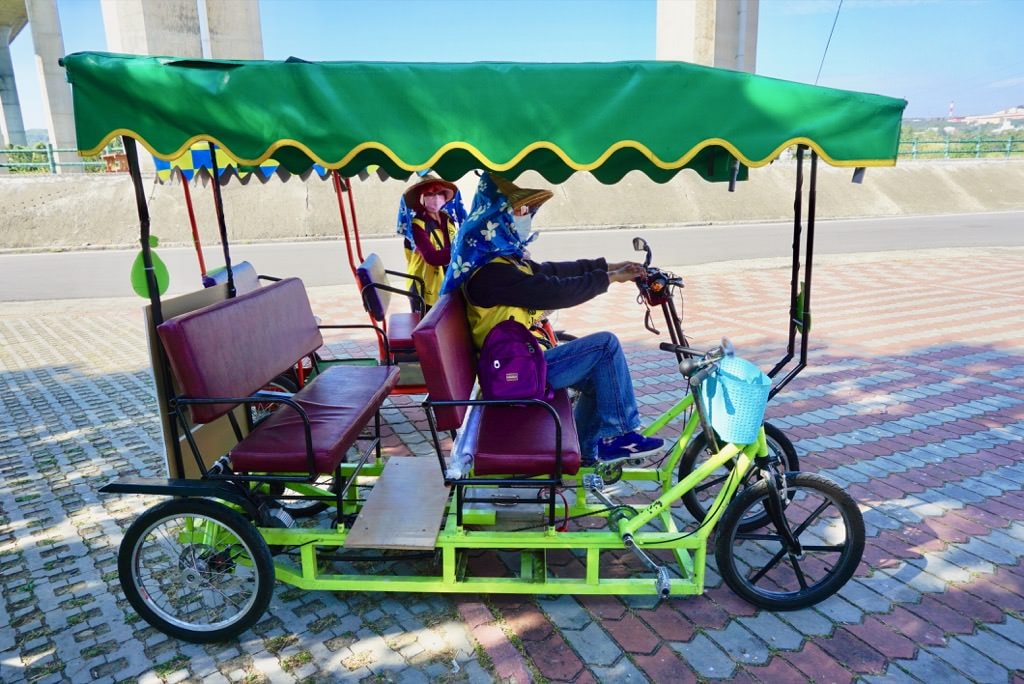 當天天氣很好,騎著電動遊園車,襯著藍天白雲,