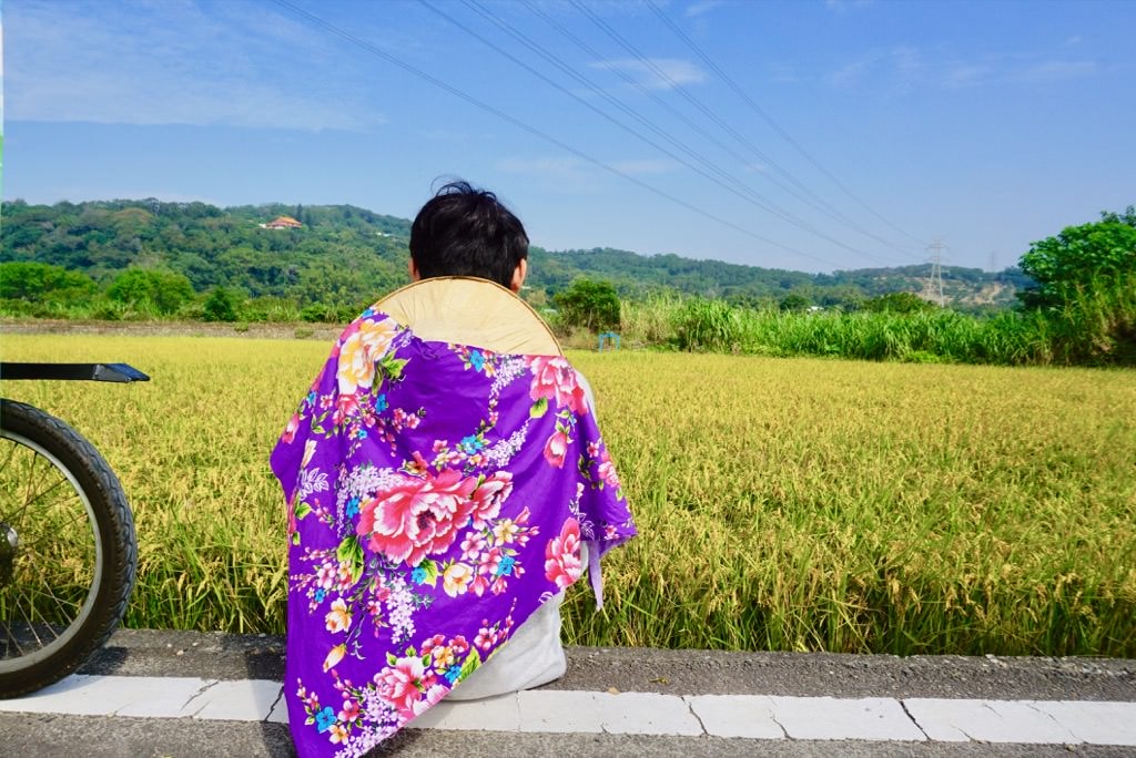 悠閒漫步在環鄉小徑,Tai 直接坐下吃阿玟姐的粽子,