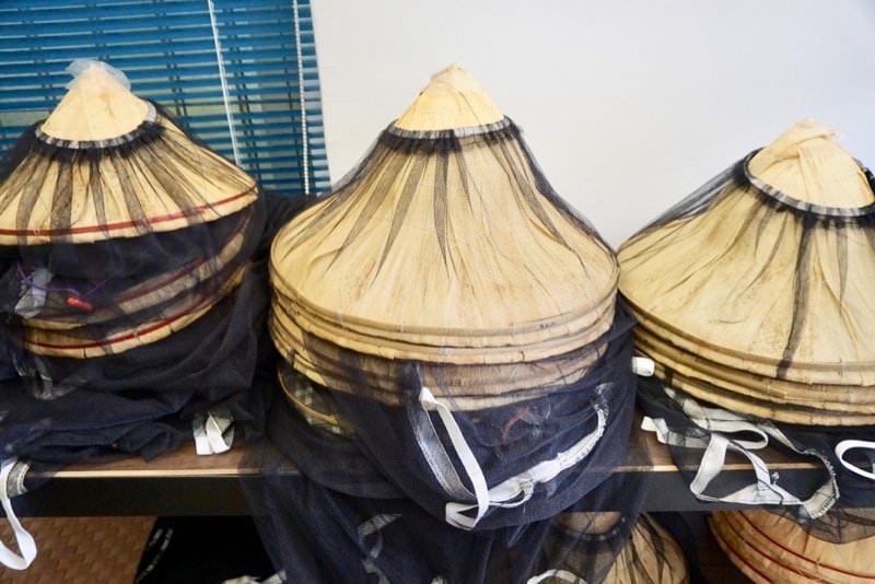 首先戴上安全的斗笠防護網,頭髮要記得塞進去,