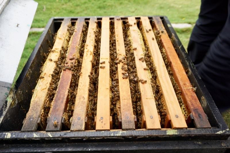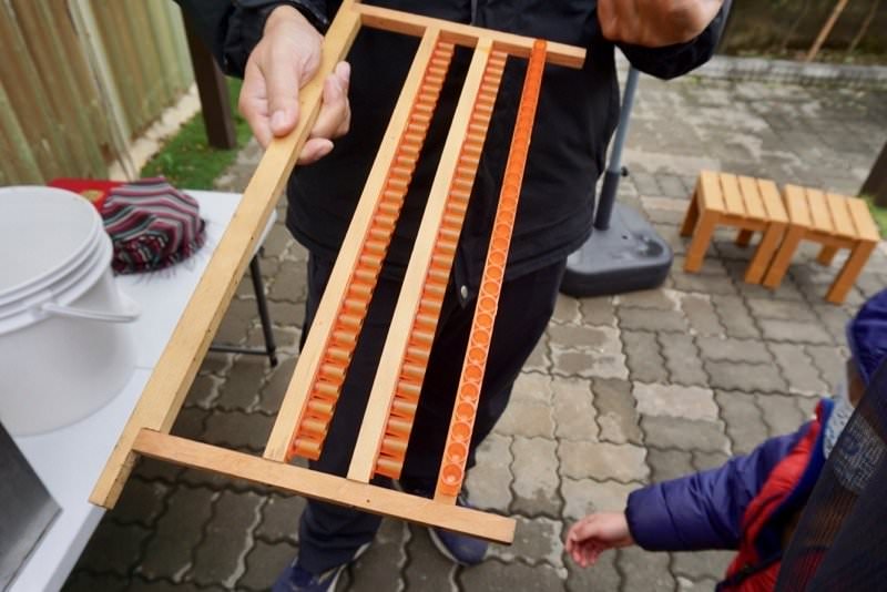 有沒有看到人工蜂巢上面亮亮的就是蜂蜜,
