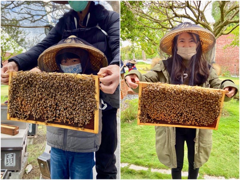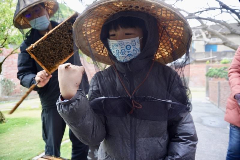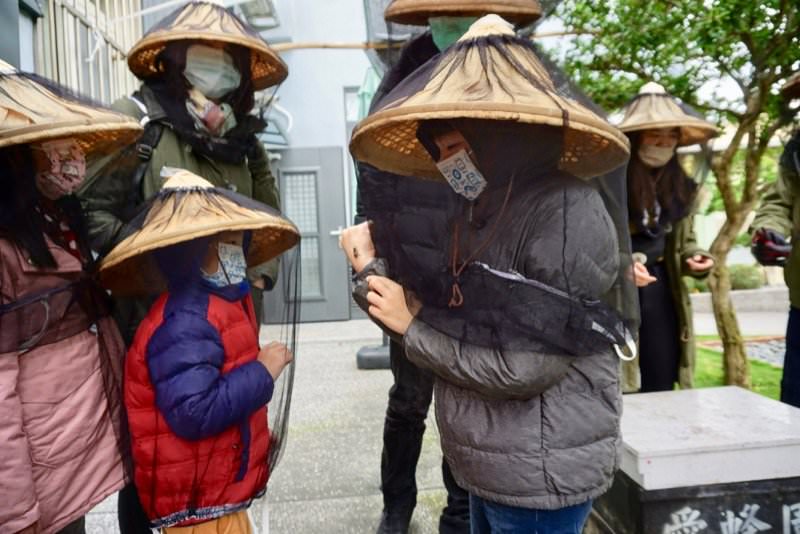 戴著採蜂安全網帽,超近距離接觸蜜蜂、了解養蜂生態知識,