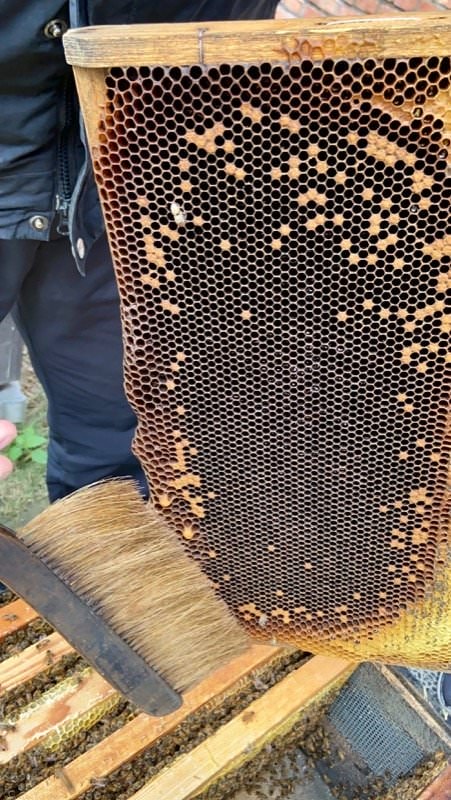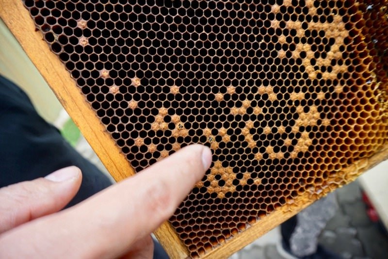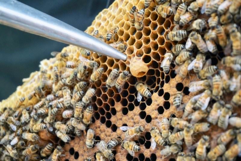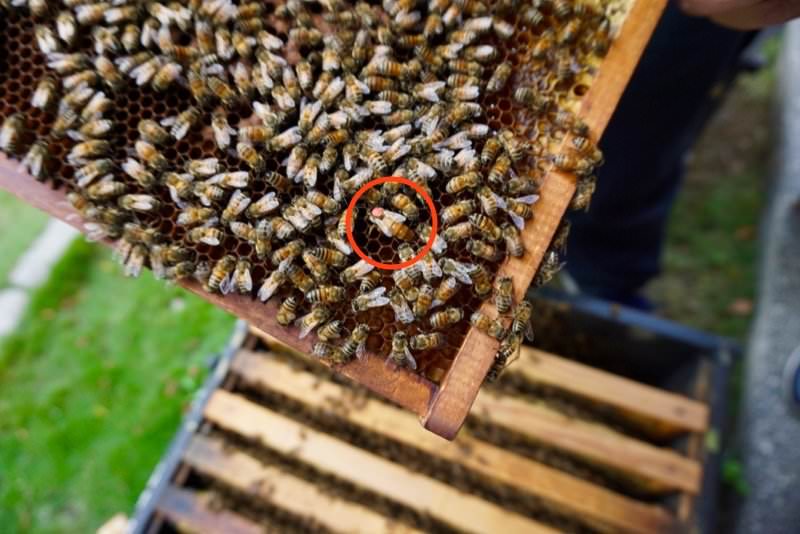 下面看到的咖啡色蓋下面是蜜蜂的卵,蜜蜂的卵是中性的,