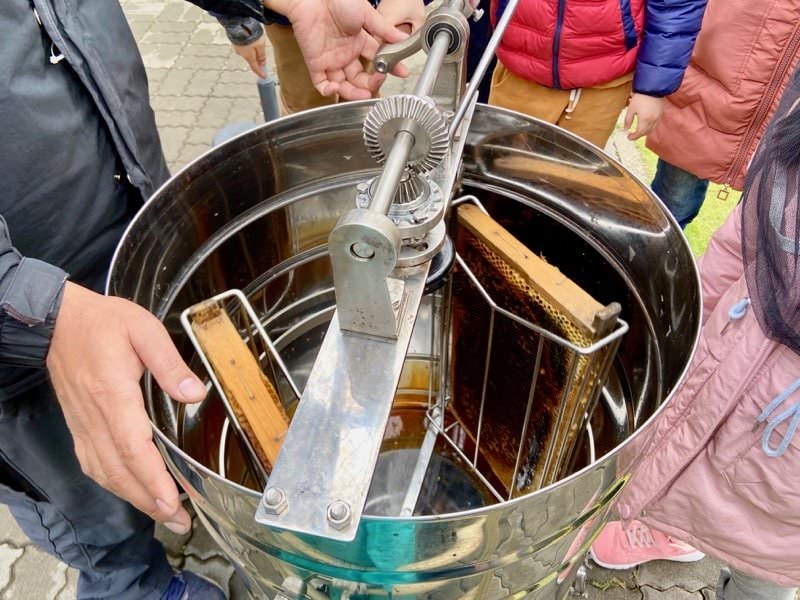 大人小孩都可以體驗手動旋轉離心機採收蜂蜜,