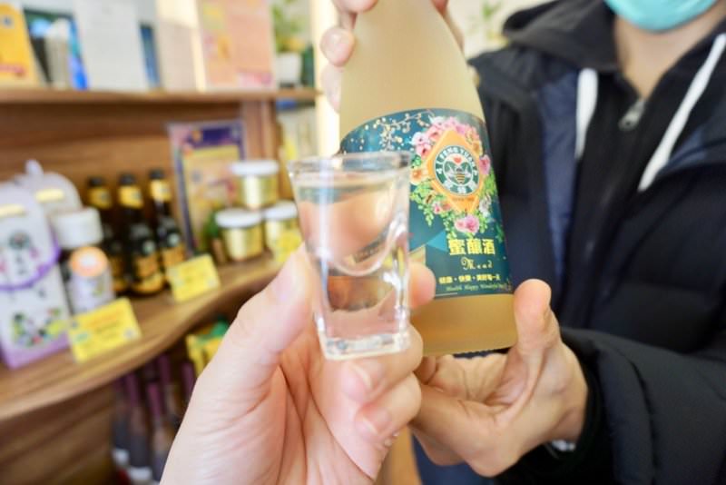 愛蜂園特製蜜釀酒,酒精濃度11%,喝起來帶淡淡甜味,妹妹試喝之後馬上買一瓶。