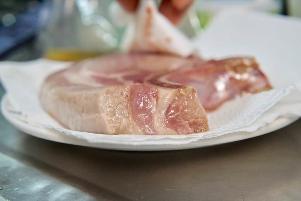 他們挑選的戰斧豬排厚度超厚!大約10元硬幣那麼高!