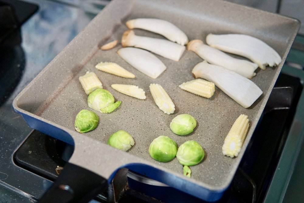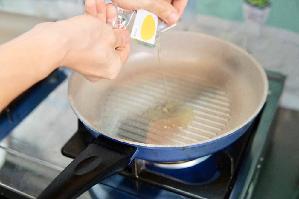接著下鍋準備煎上色,連油料包也備好最適合的酪梨油,
