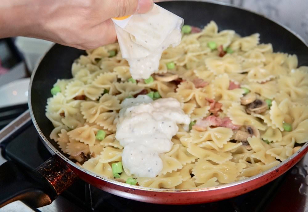 ▼接下來是更簡單輕鬆的奶油培根義大利蝴蝶麵