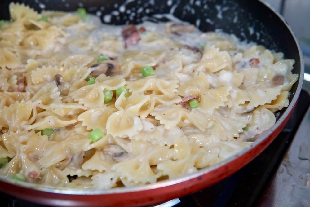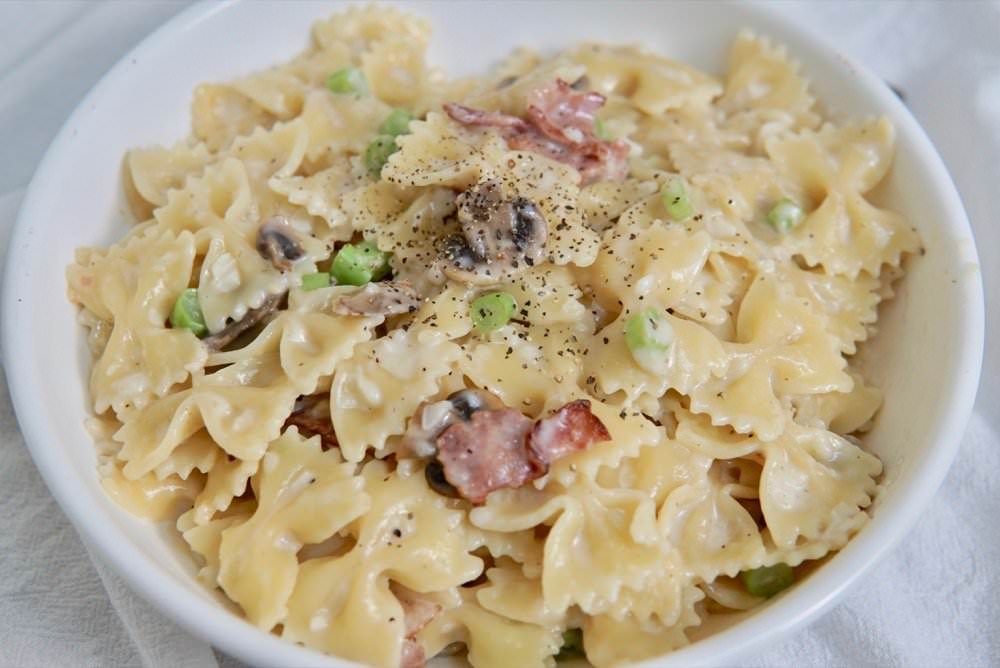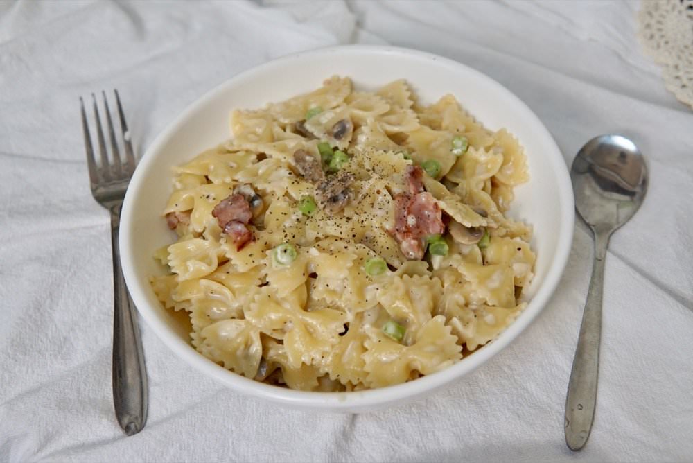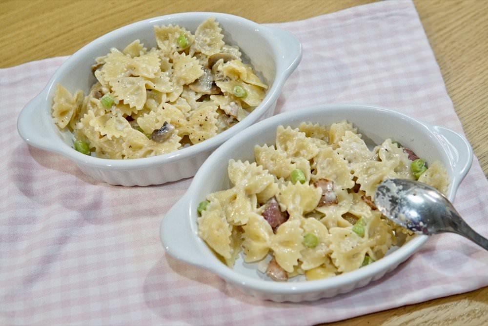奶油培根義大利蝴蝶麵的食譜步驟又更簡單了,