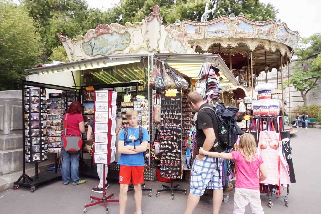 ▼這邊有各式各樣關於巴黎的T恤、明信片、鑰匙圈、磁鐵等小物,來這的遊客也特別多