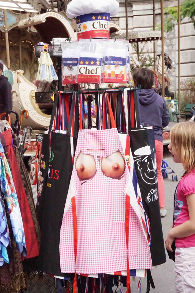 ▼路邊攤的星級廚師帽與逗趣圍裙,在巴黎的小攤販常會看到很多逗趣的東西,