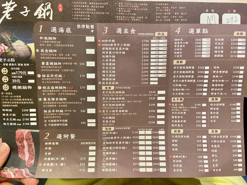 荖子鍋的價位算是平價,梅花豬肉鍋 $260 起(另加一成服務費)