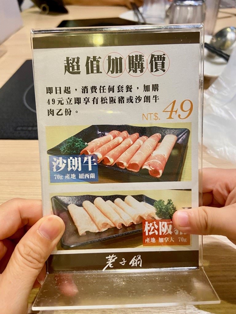 最近有超值加購松阪豬或沙朗牛肉只要 $49 元的優惠活動