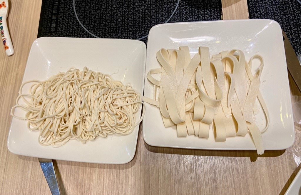 機器就會攪和水自動出麵,有分寬麵與細麵,