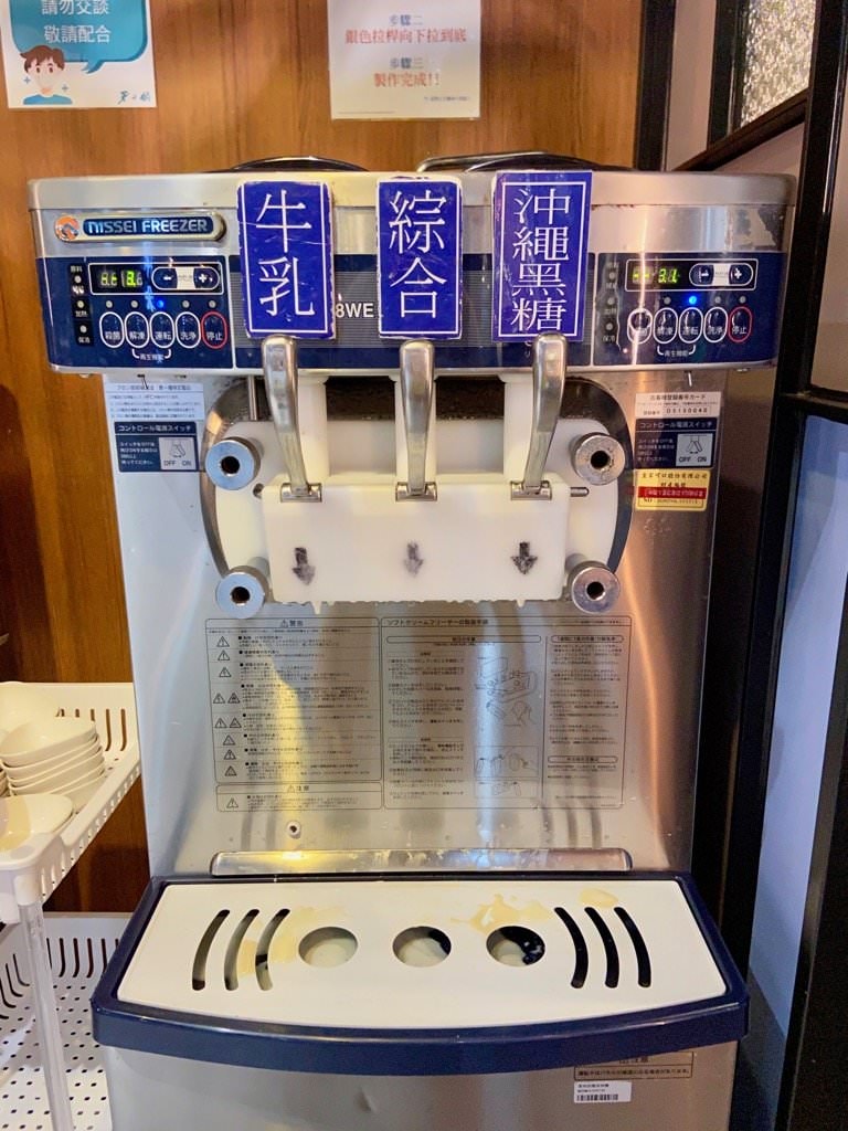 另一台是可以自己拉拉桿取冰的霜淇淋機,有牛奶跟沖繩黑糖兩種口味!