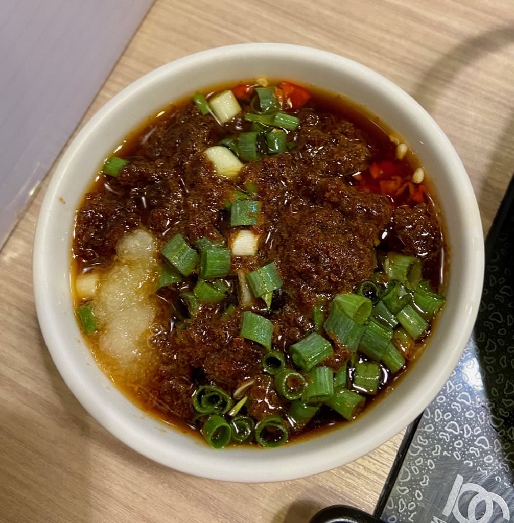 (麵本身是沒有味道,清淡口味可以吃湯頭的味道,重口味的人加醬會覺得比較好吃)