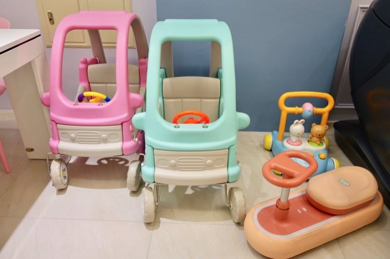 ▼大人按摩的時候,小孩就在旁邊自己嚕車,總共有5台不同年齡可玩的小車車