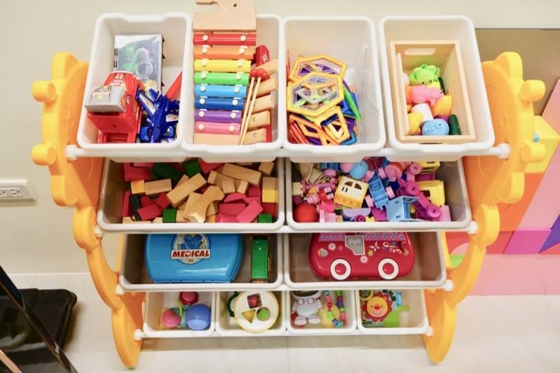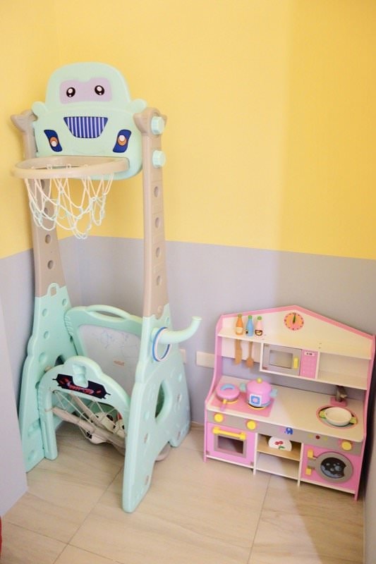 ▼公共空間除了車,還有投籃籃筐、書籍、豐富多樣的玩具、迎賓小零食…等,一進門小孩就直接放生自己玩