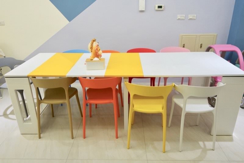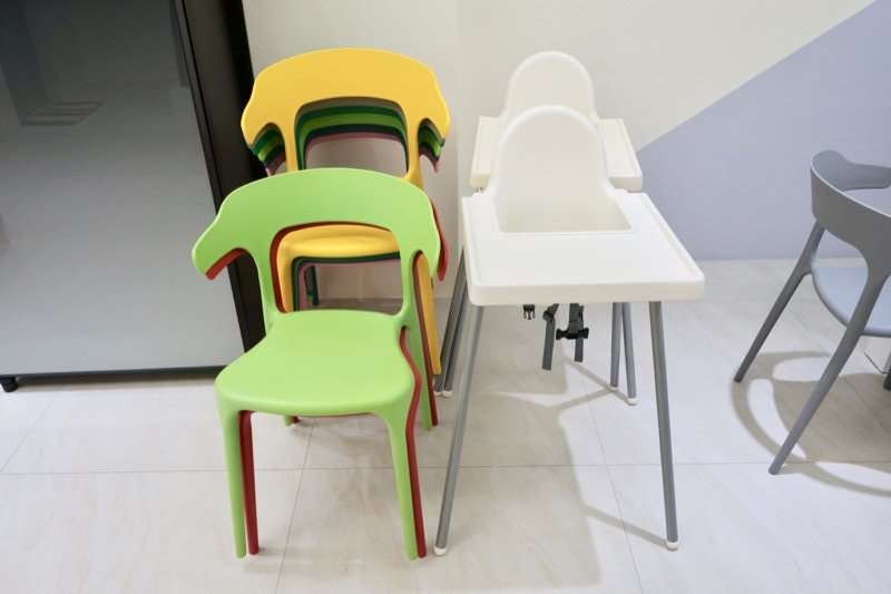 ▼客廳緊連著餐桌,有充足的椅子還有IKEA兒童椅