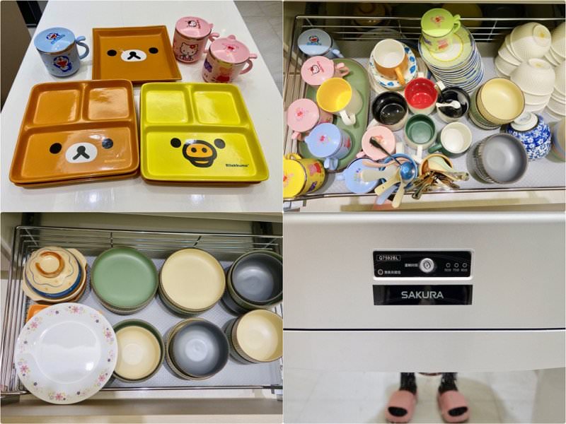▼餐具超多,包含許多超可愛的兒童餐具與杯子,都清洗得非常乾淨,買餐點回來吃很方便!另外也有臭氧殺菌功能的碗櫥