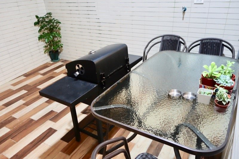 ▼一樓陽台戶外空間,看起來是包棟可烤肉用,外面放有煙灰缸(民宿室內全面禁煙喔!)