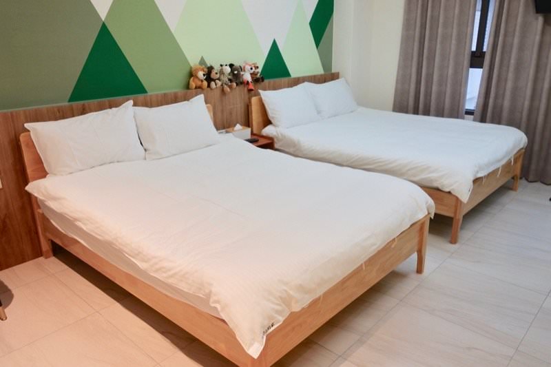 照片幾乎跟現場一樣,一進去左手邊是兩張雙人床,他們的床睡起來非常舒服,一覺到天亮完全不會腰痠背痛。