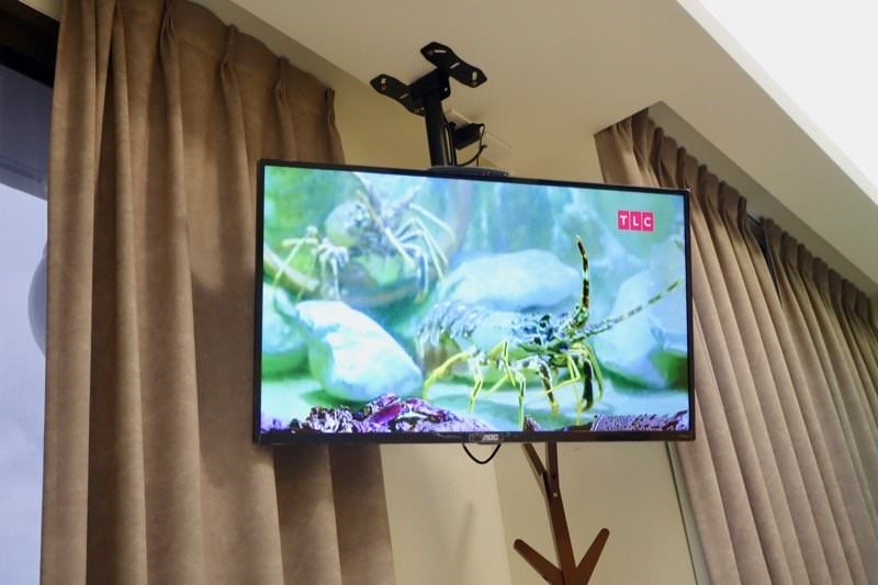 電視的設計是懸掛在牆上,躺著看剛剛好!