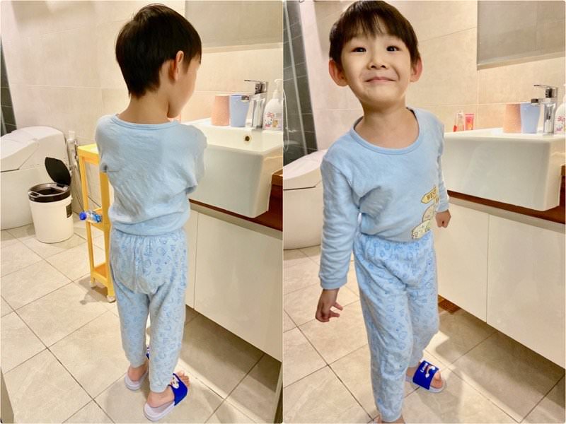 洗手台的高度對約110公分的瀚寶來說非常親切,可以自己在這邊刷刷牙。